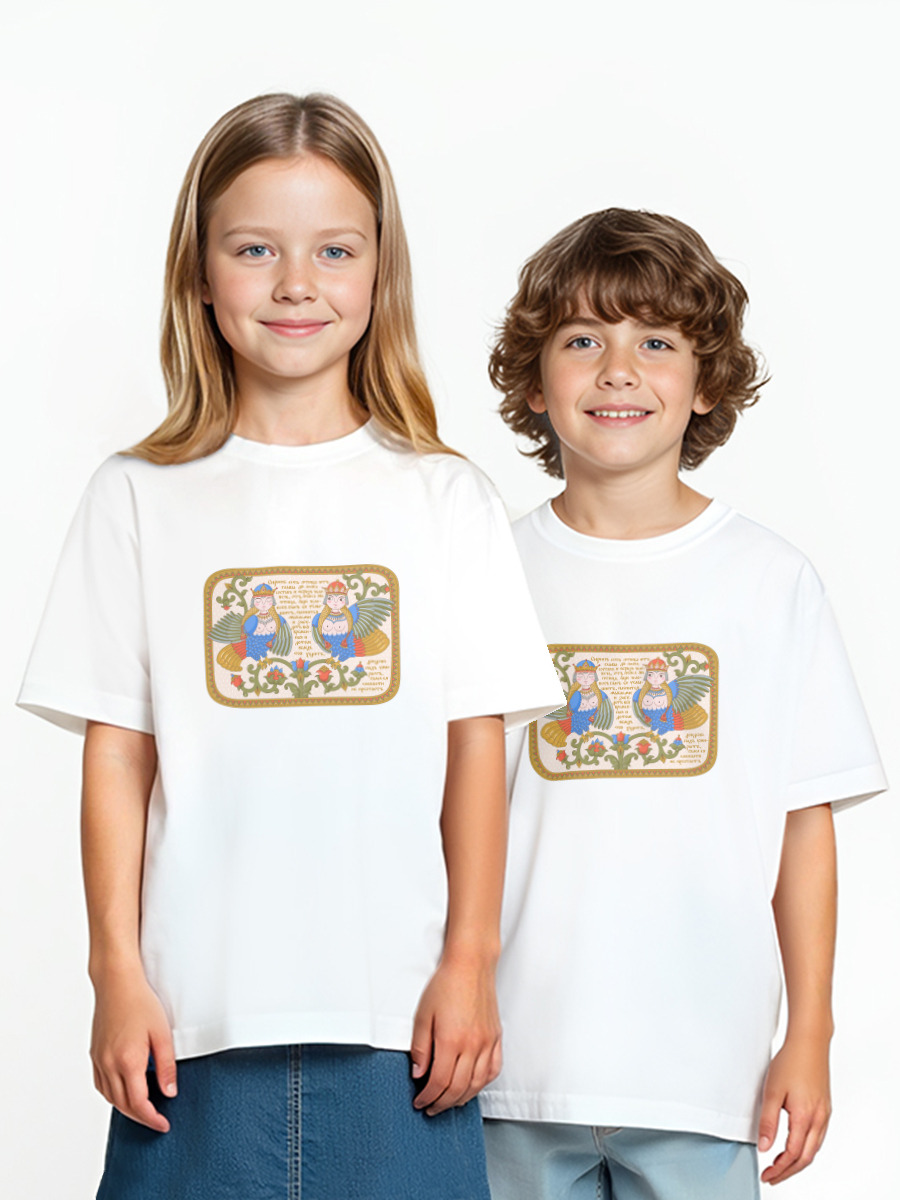 Детская оверсайз футболка «Птицы Сирин в русском стиле с орнаментом»