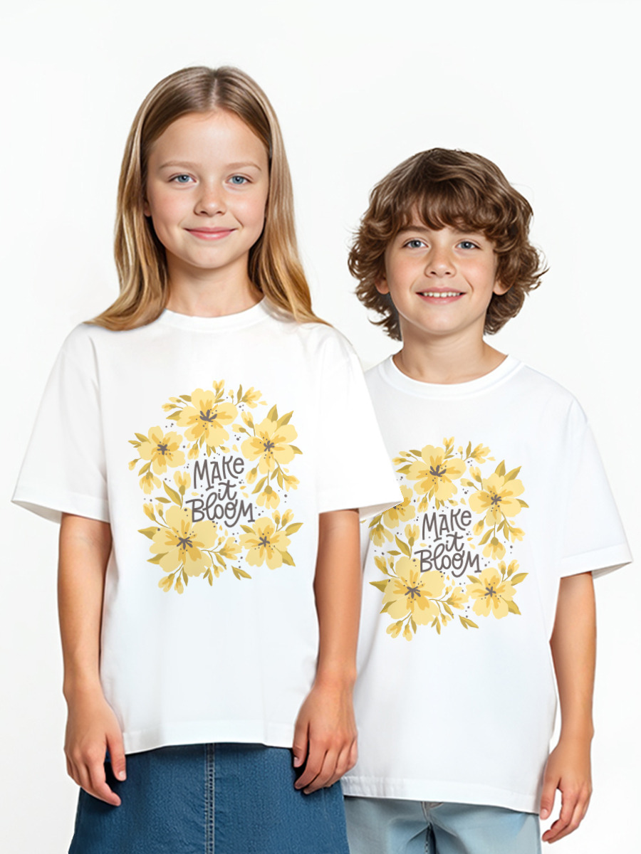 Детская оверсайз футболка «Мотивирующая фраза на фоне цветов»