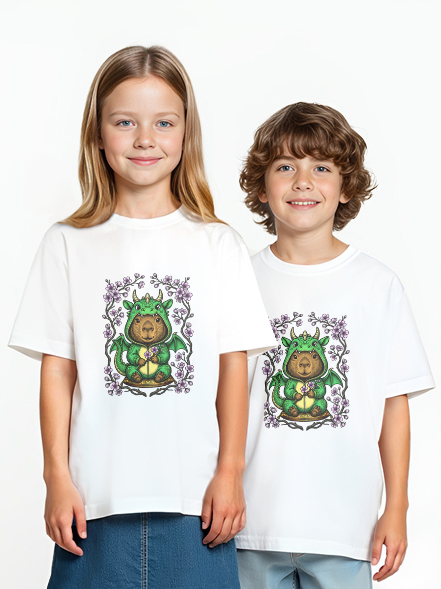 Детская футболка «Капибара в кигуруми дракона»