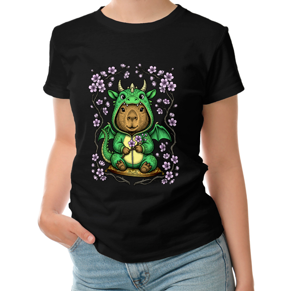 Женская футболка «Капибара в кигуруми дракона»