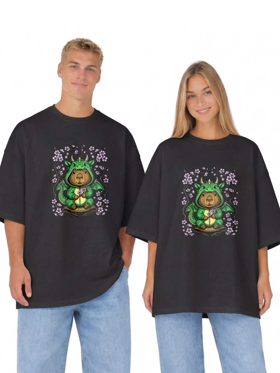 Футболка оверсайз «Капибара в кигуруми дракона»