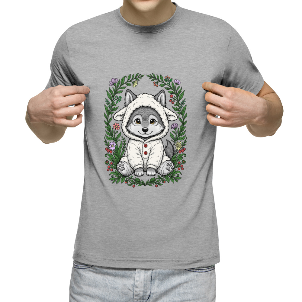 Мужская футболка «Волчонок в овечьей кигуруми»