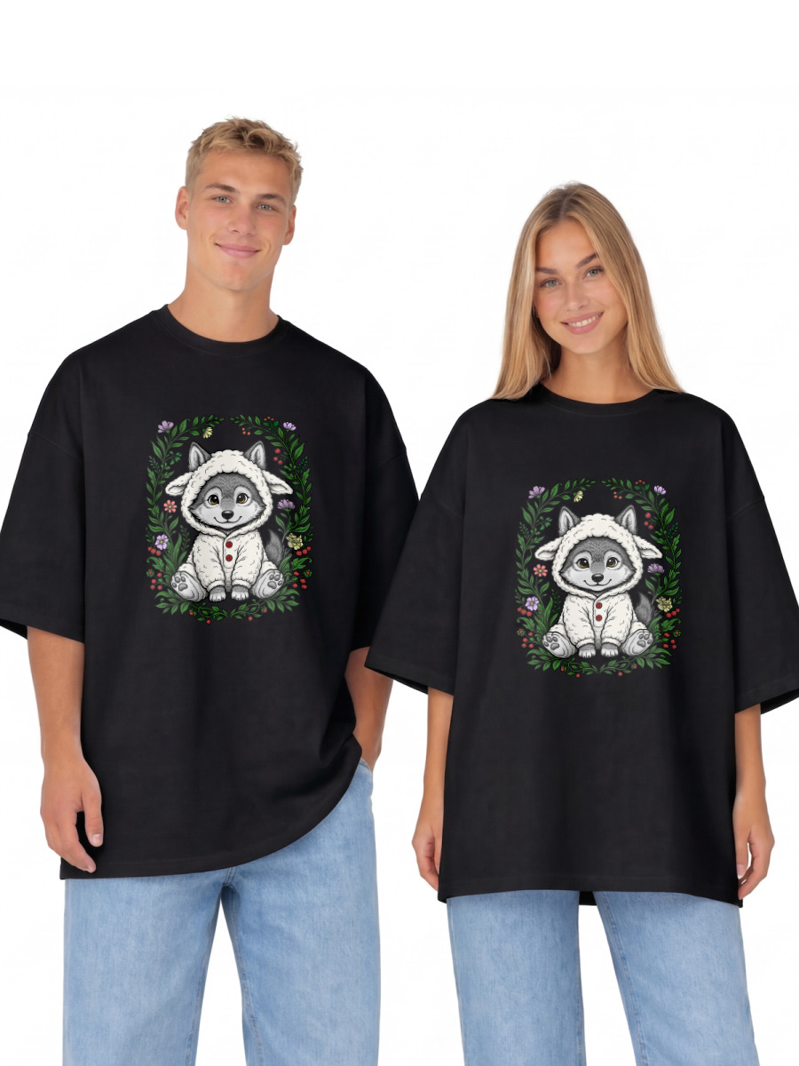 Футболка оверсайз «Волчонок в овечьей кигуруми»