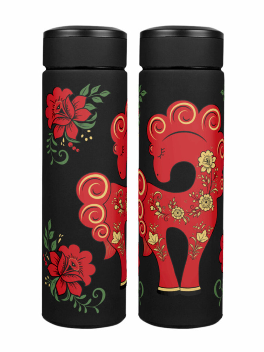 Термос «Роспись лошади в стиле хохлома Сувенир В подарок»