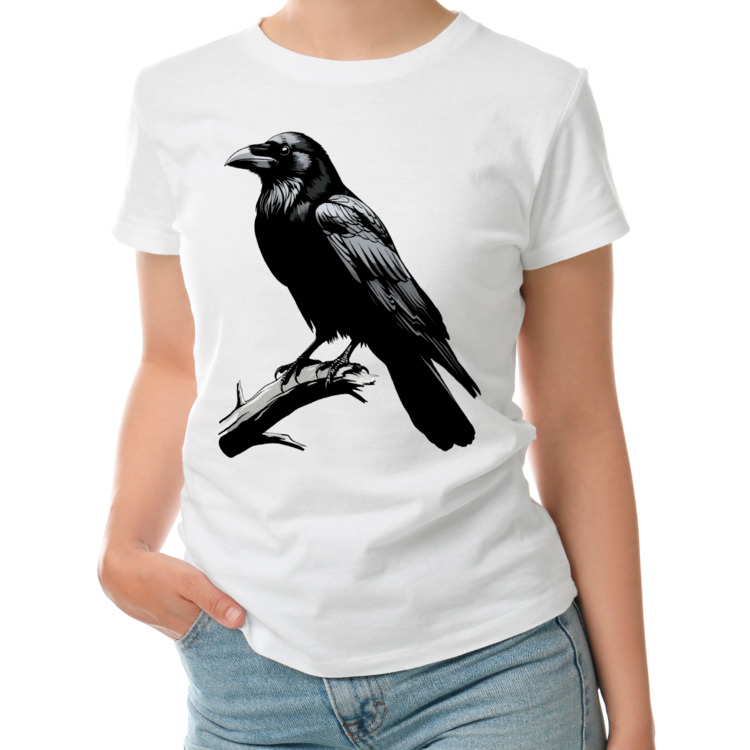Женская футболка «Чёрный ворон на ветке»