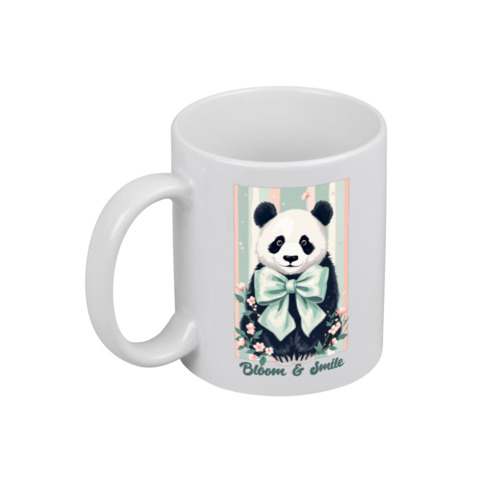 Кружка «Весенняя Панда с цветами и зеленым бантиком»