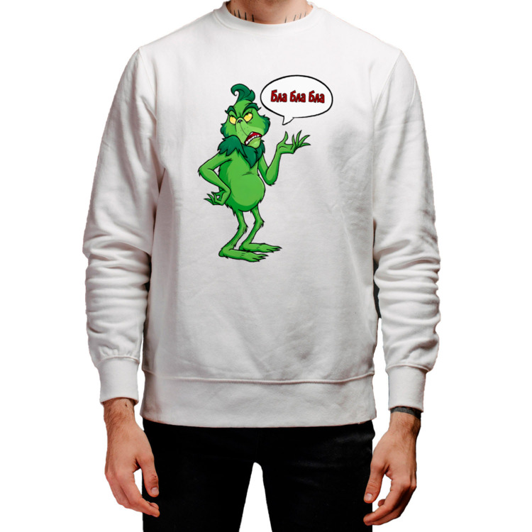 Мужской свитшот «Гринч с надписью бла бла бла»