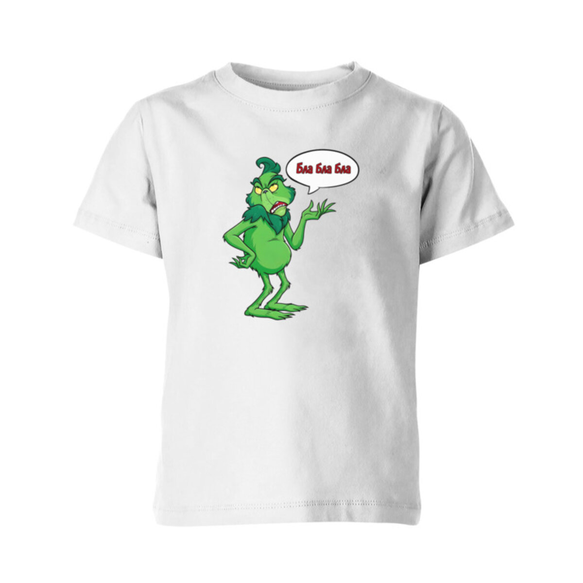 Детская оверсайз футболка «Гринч с надписью бла бла бла»