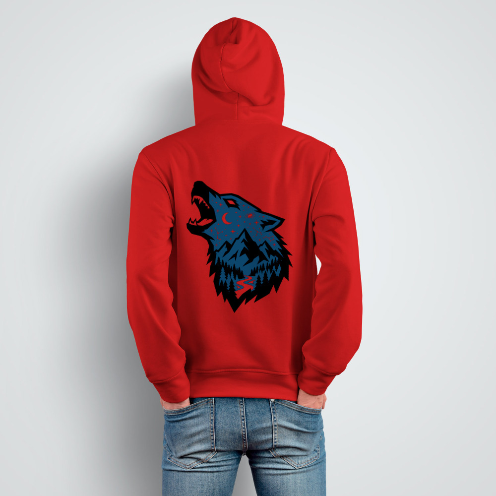 Мужская толстовка «Волк - голова волка с горным пейзажем внутри»