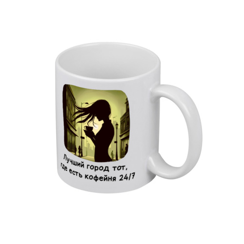 Ежедневник «Девушка с кофе ночью на улице Чёрная надпись» цвет желтый