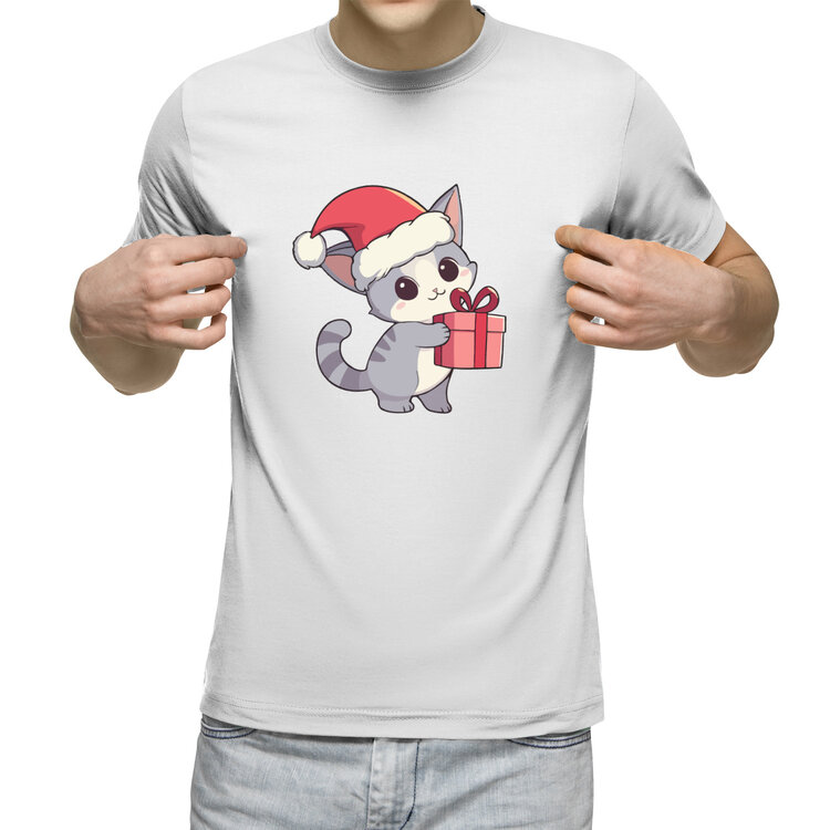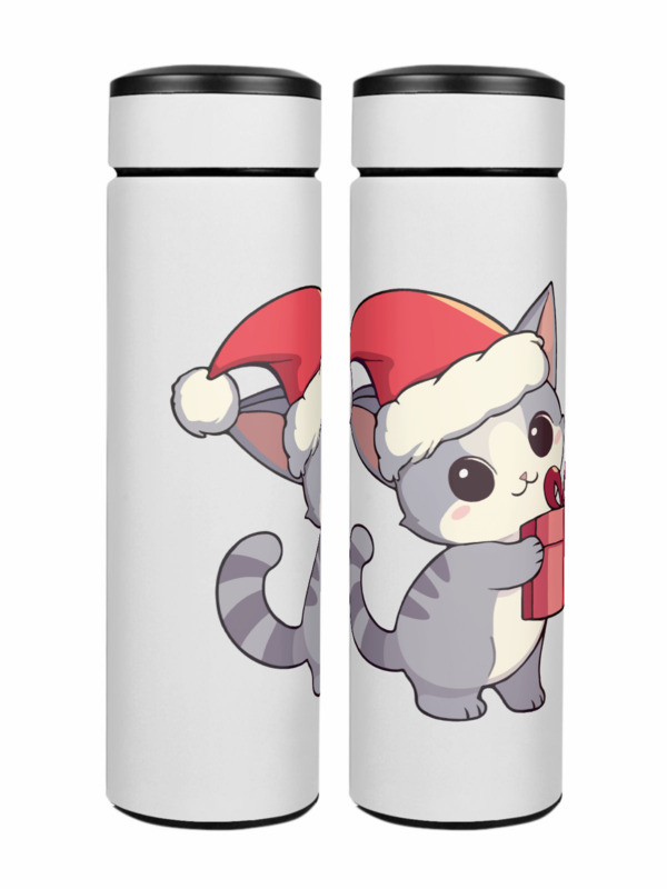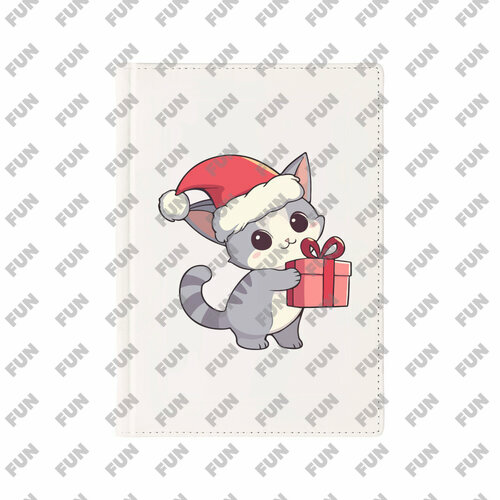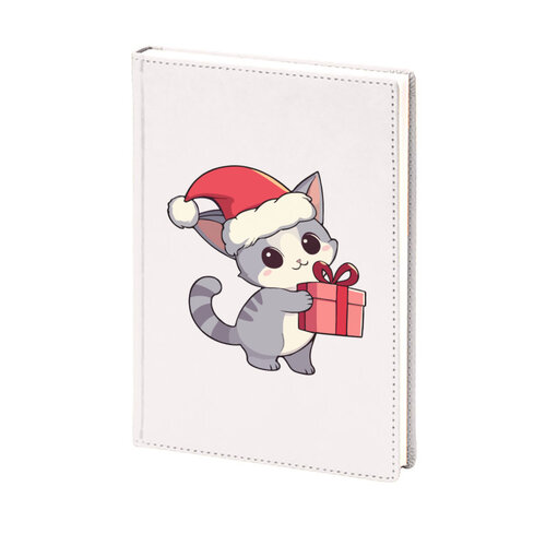 Ежедневник «Кот в стиле аниме с подарком. Новый год» цвет белый