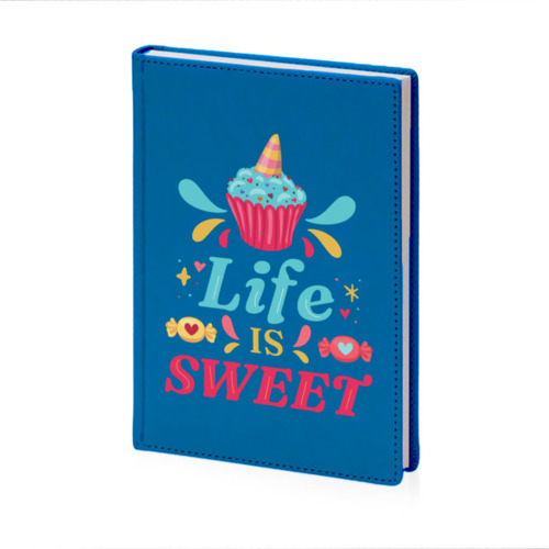 Ежедневник «Пирожное единорог,Жизнь прекрасна,фраза,выражение» цвет синий
