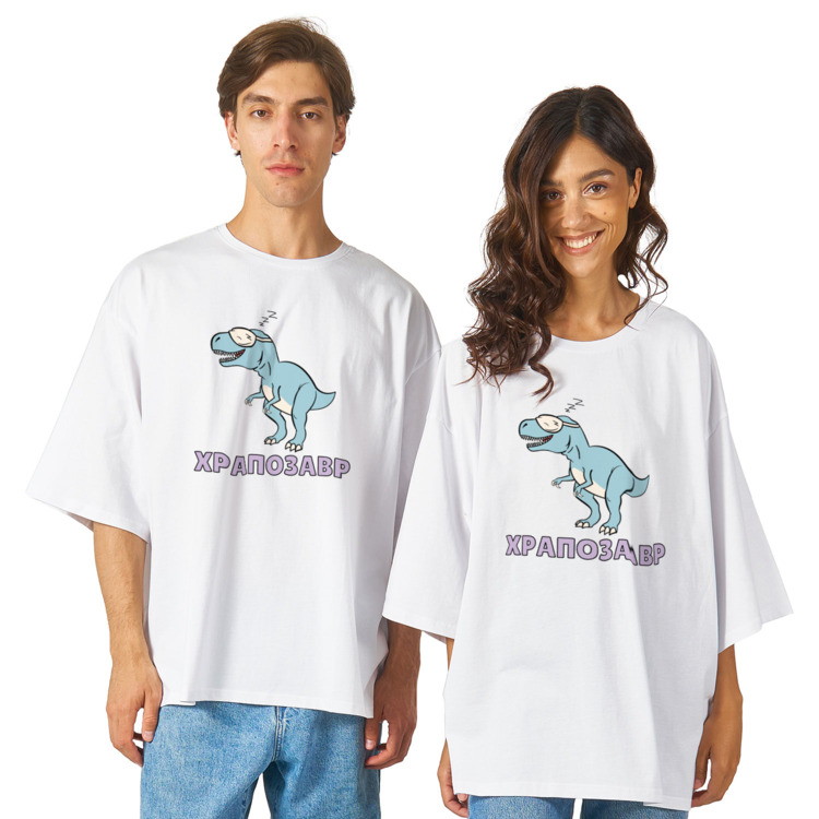 Худи оверсайз «Храпозавр - сонный динозавр T-Rex» цвет белый меланж