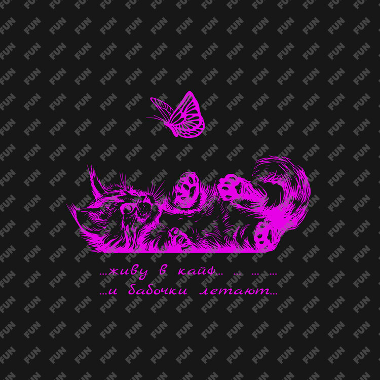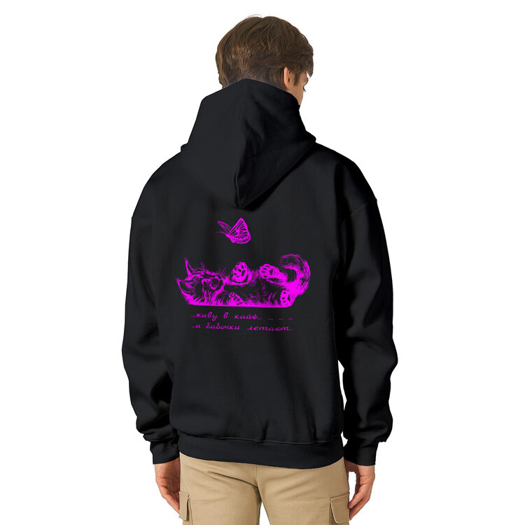 Худи оверсайз «Котик милый бабочка розовый» цвет черный