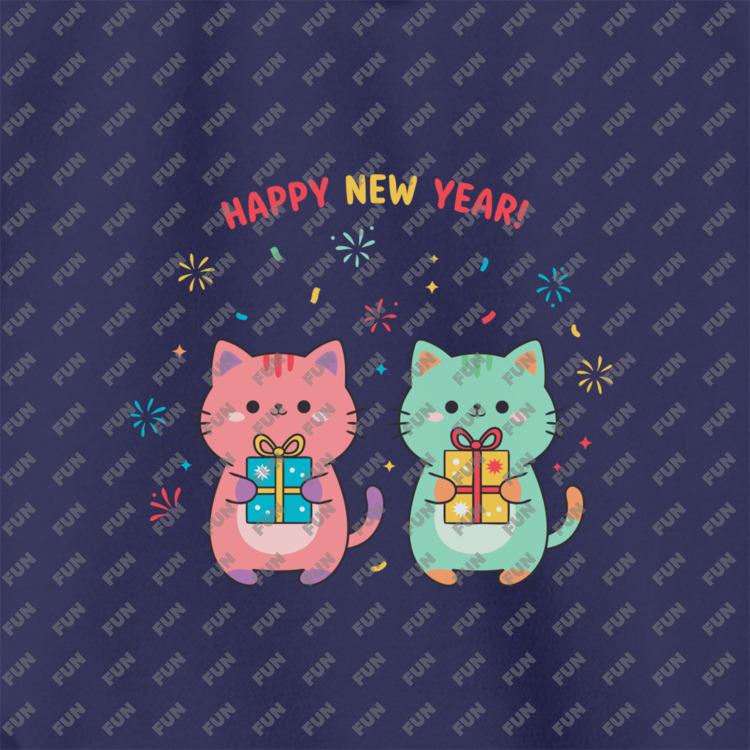 Худи оверсайз «Новогодние котики с подарками» цвет темно-синий