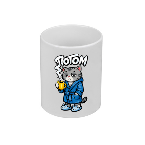 Худи оверсайз «Сонный кот с надписью ПОТОМ» цвет белый