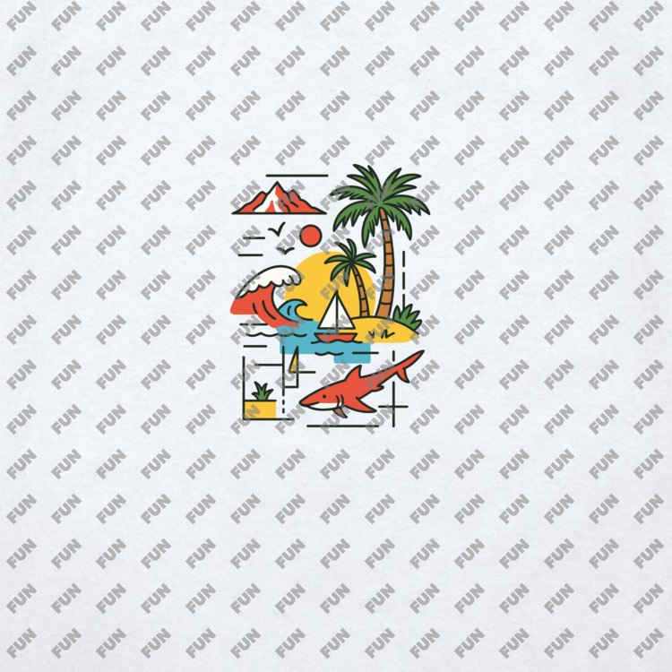 Худи оверсайз «Тропический пейзаж: корабль, акула и горы» цвет белый