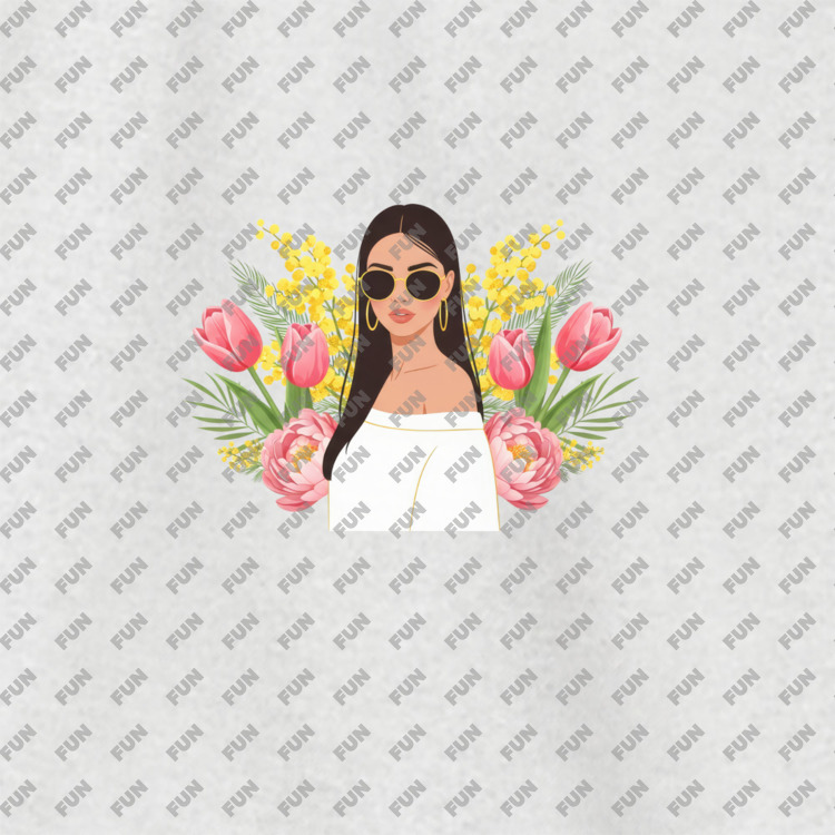 Худи оверсайз «весна и девушка в черных очках с цветами» цвет белый меланж