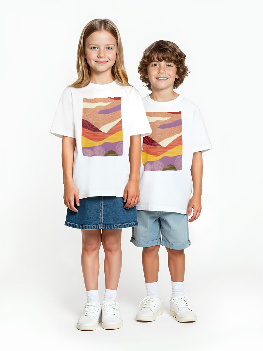 Детская оверсайз футболка «Абстрактный пейзаж с солнцем» цвет белый