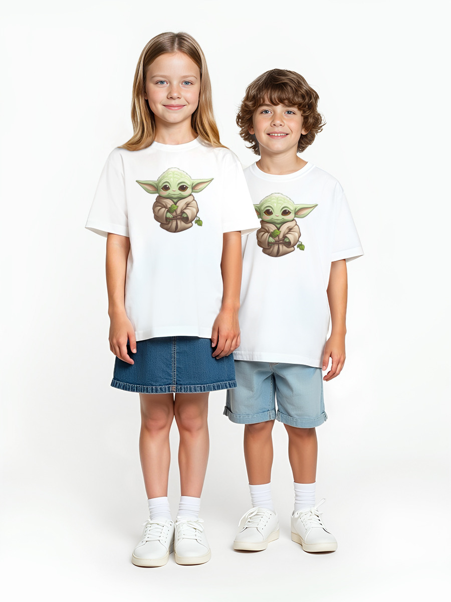 Детская оверсайз футболка «Baby Yoda» цвет белый