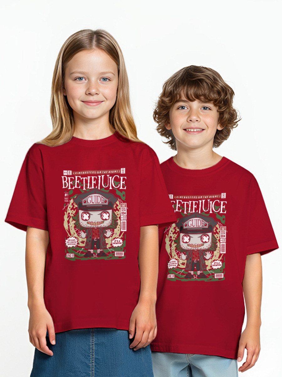 Детская оверсайз футболка «Битлджус Чиби - Beetlejuice» цвет красный