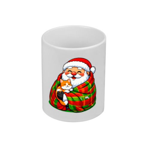 Детская оверсайз футболка «Дед Мороз с котом на руках» цвет голубой