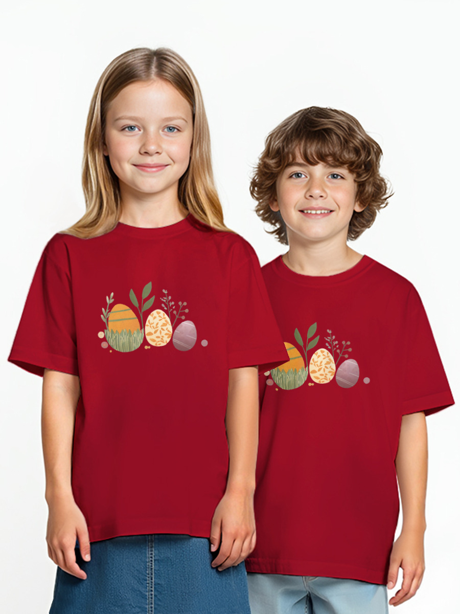 Детская оверсайз футболка «Декоративные пасхальные яйца» цвет красный
