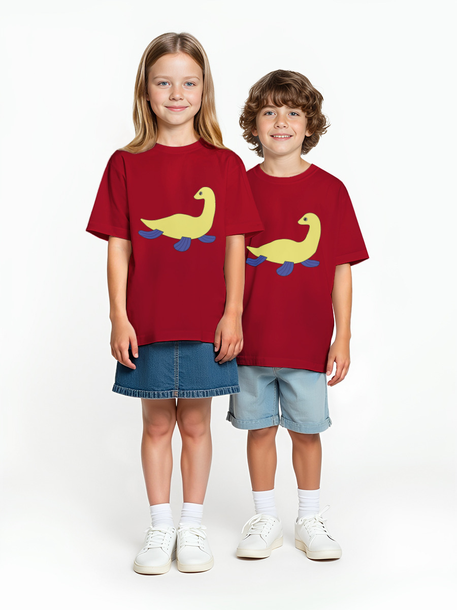 Детская оверсайз футболка «динозавр несси» цвет красный