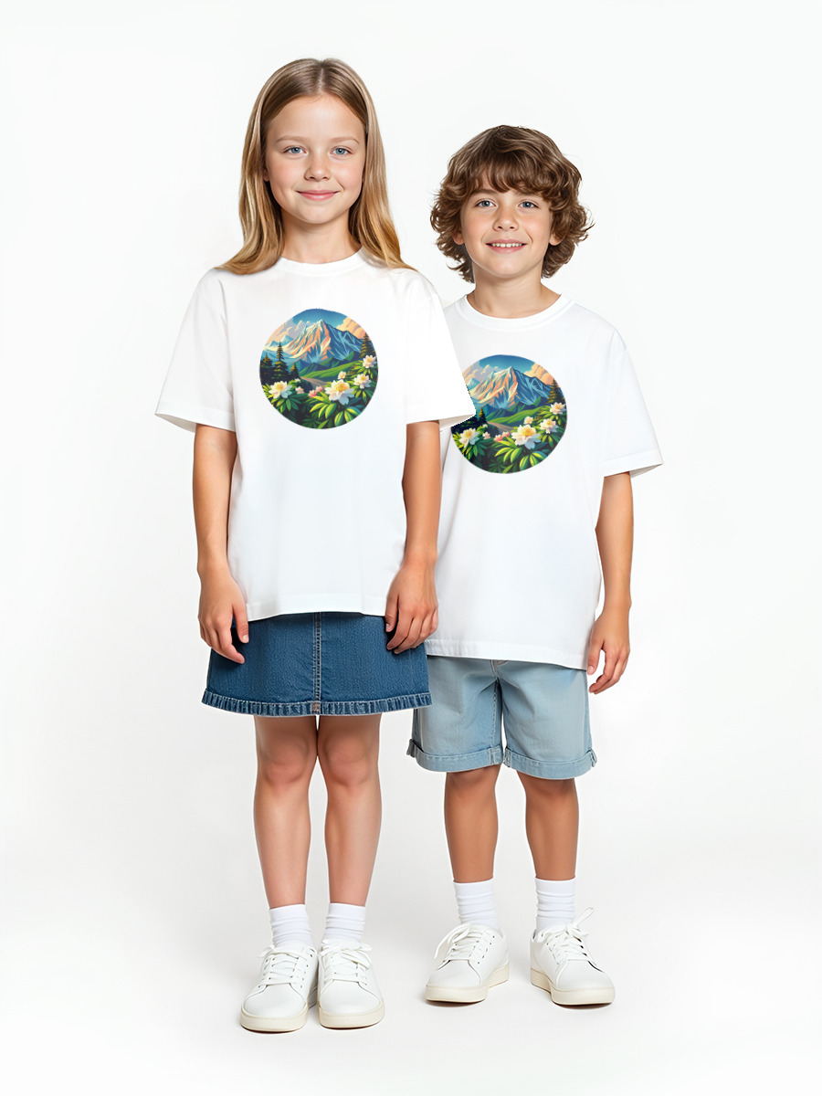 Детская оверсайз футболка «Горы и цветы» цвет белый