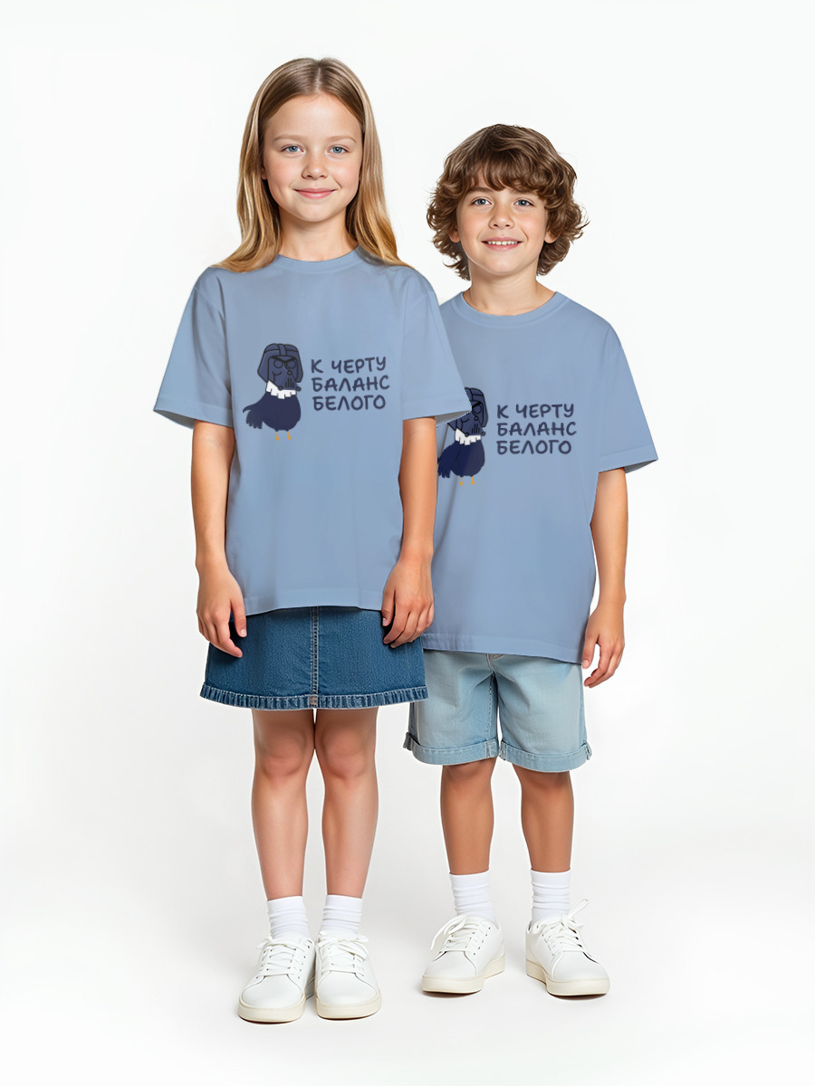 Детская оверсайз футболка «К черту баланс белого» цвет голубой