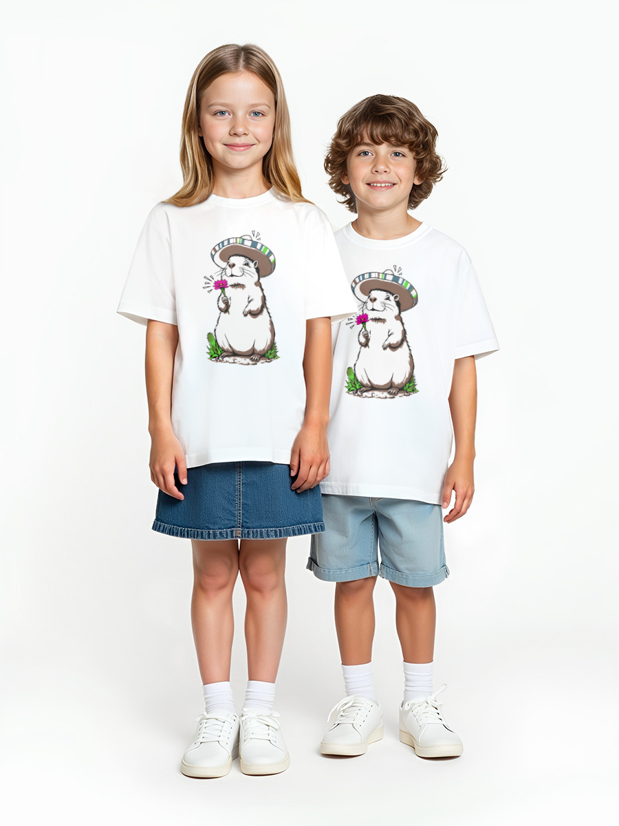 Детская оверсайз футболка «Капибара весенняя» цвет белый