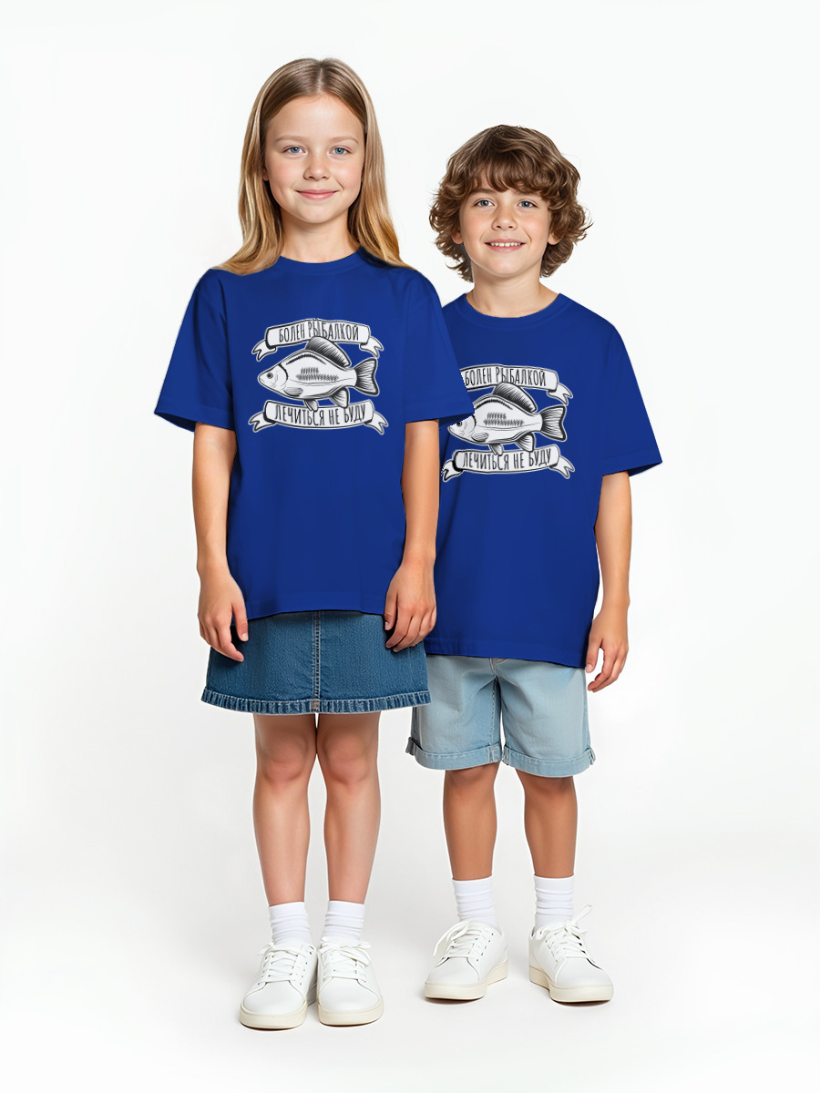 Детская оверсайз футболка «Карась и надпись про рыбалку с ленточками» цвет синий