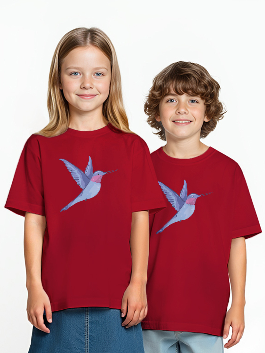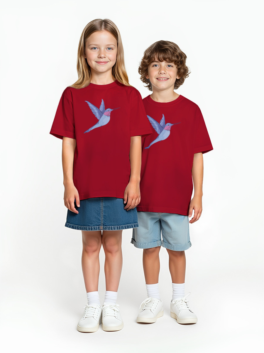 Детская оверсайз футболка «Колибри синяя птица» цвет красный