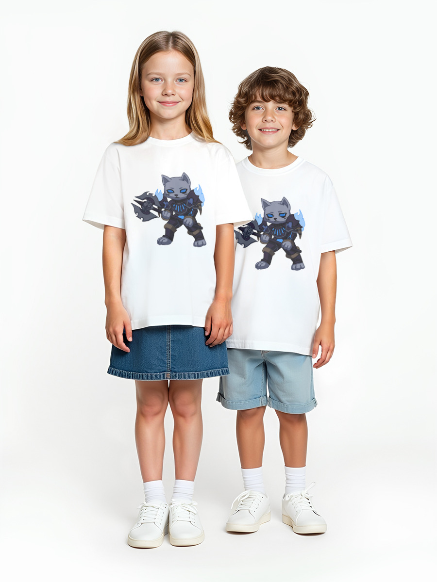 Детская оверсайз футболка «Кот - рыцарь смерти, Warcraft» цвет белый
