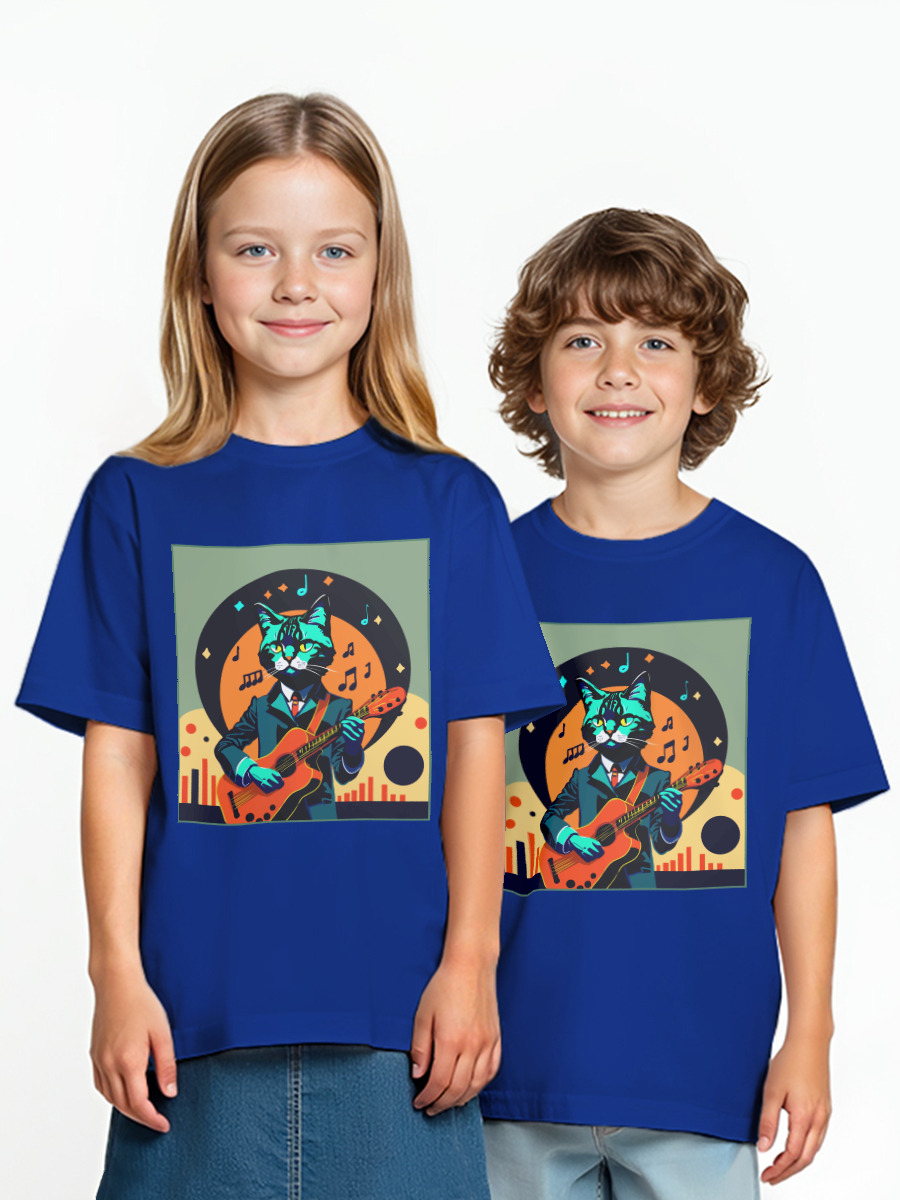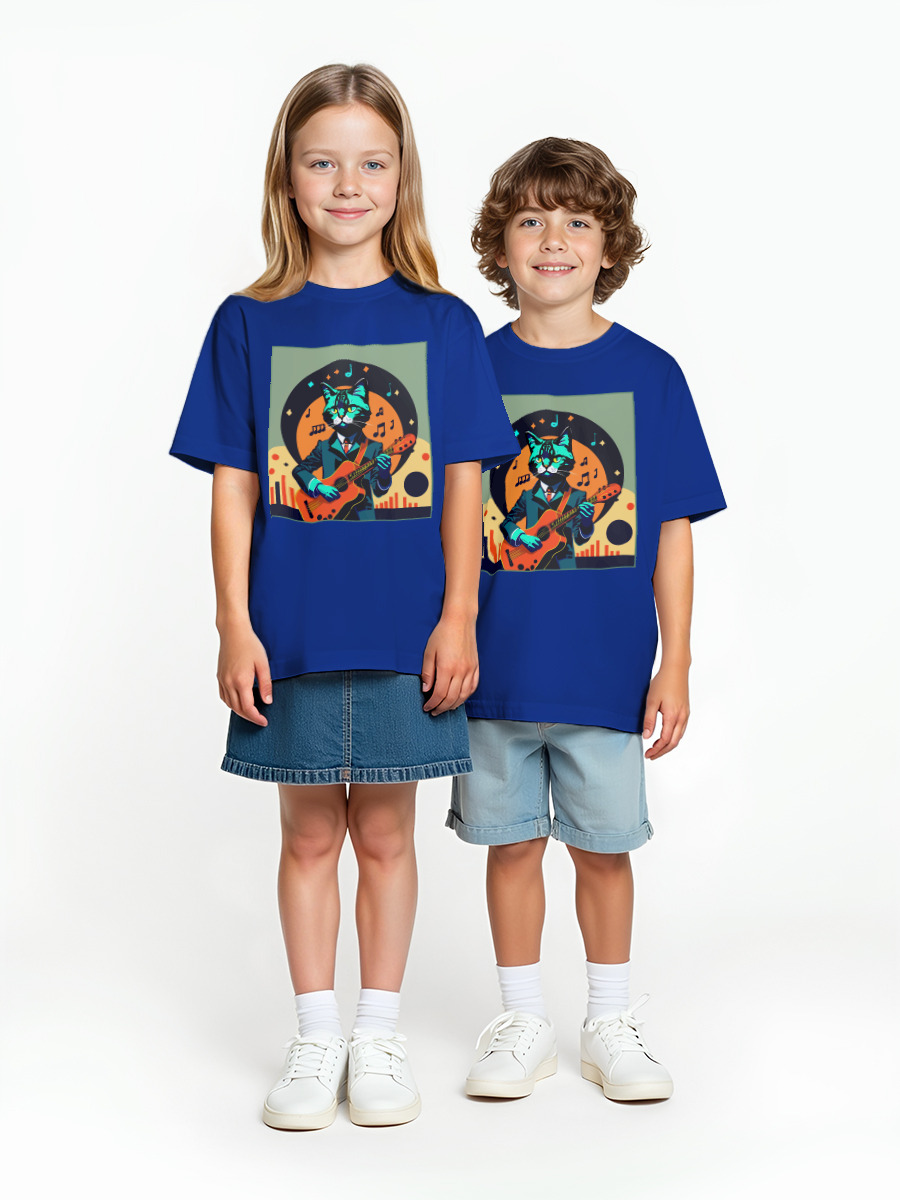 Детская оверсайз футболка «Кот с гитарой» цвет синий