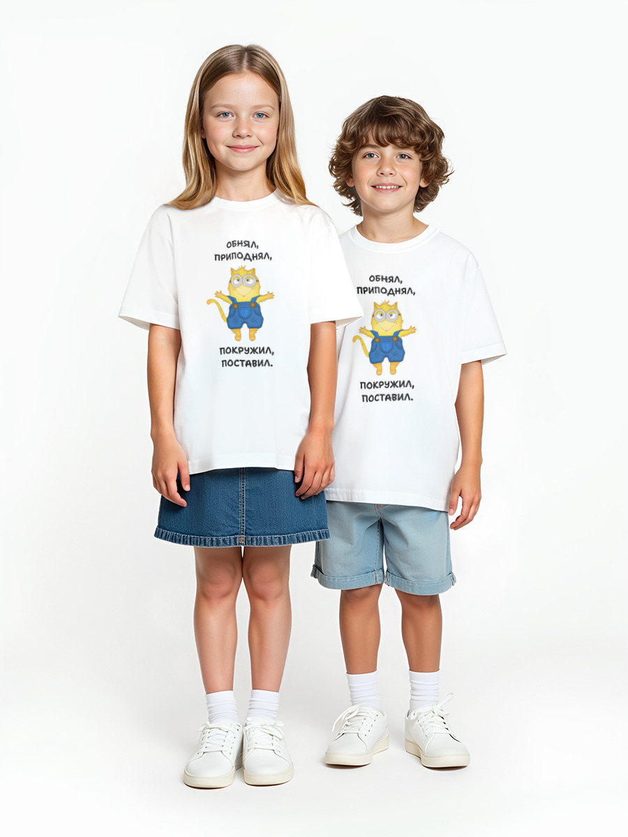 Детская оверсайз футболка «Котоминьон Обнял-приподнял» цвет белый