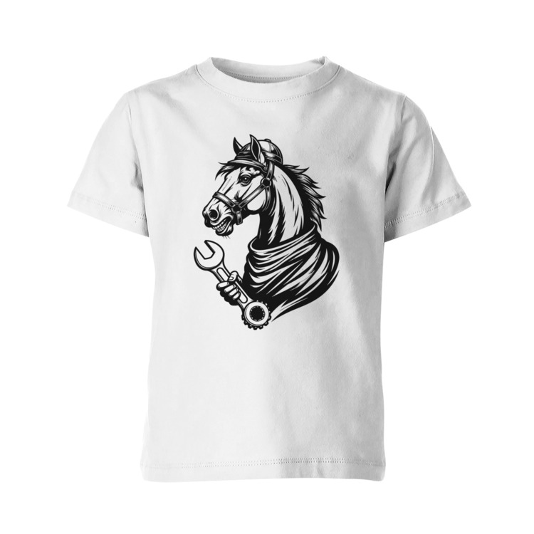Детская оверсайз футболка «Лошадь с гаечным ключом» цвет белый