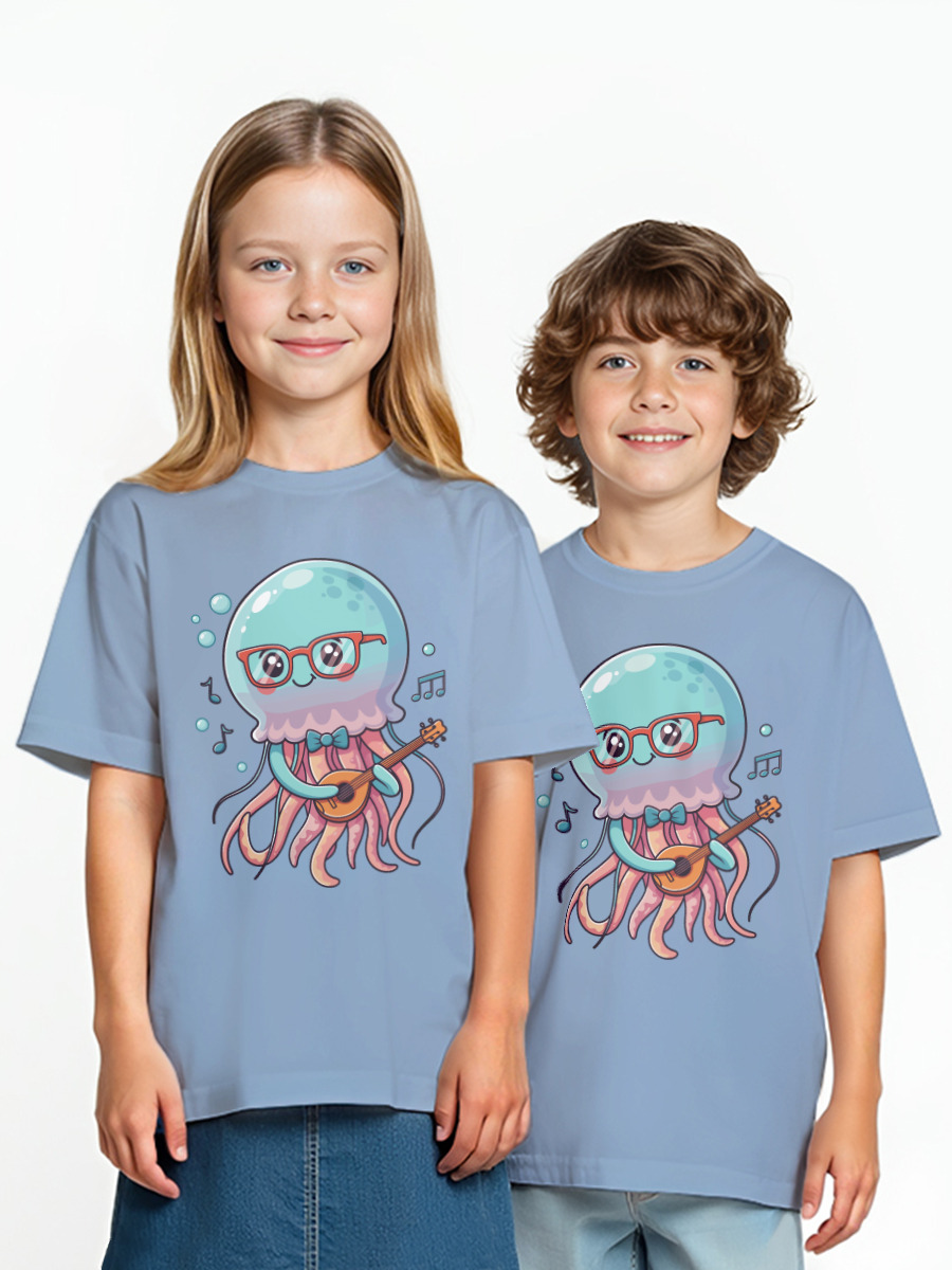 Детская оверсайз футболка «Медуза играет на мандолине» цвет голубой