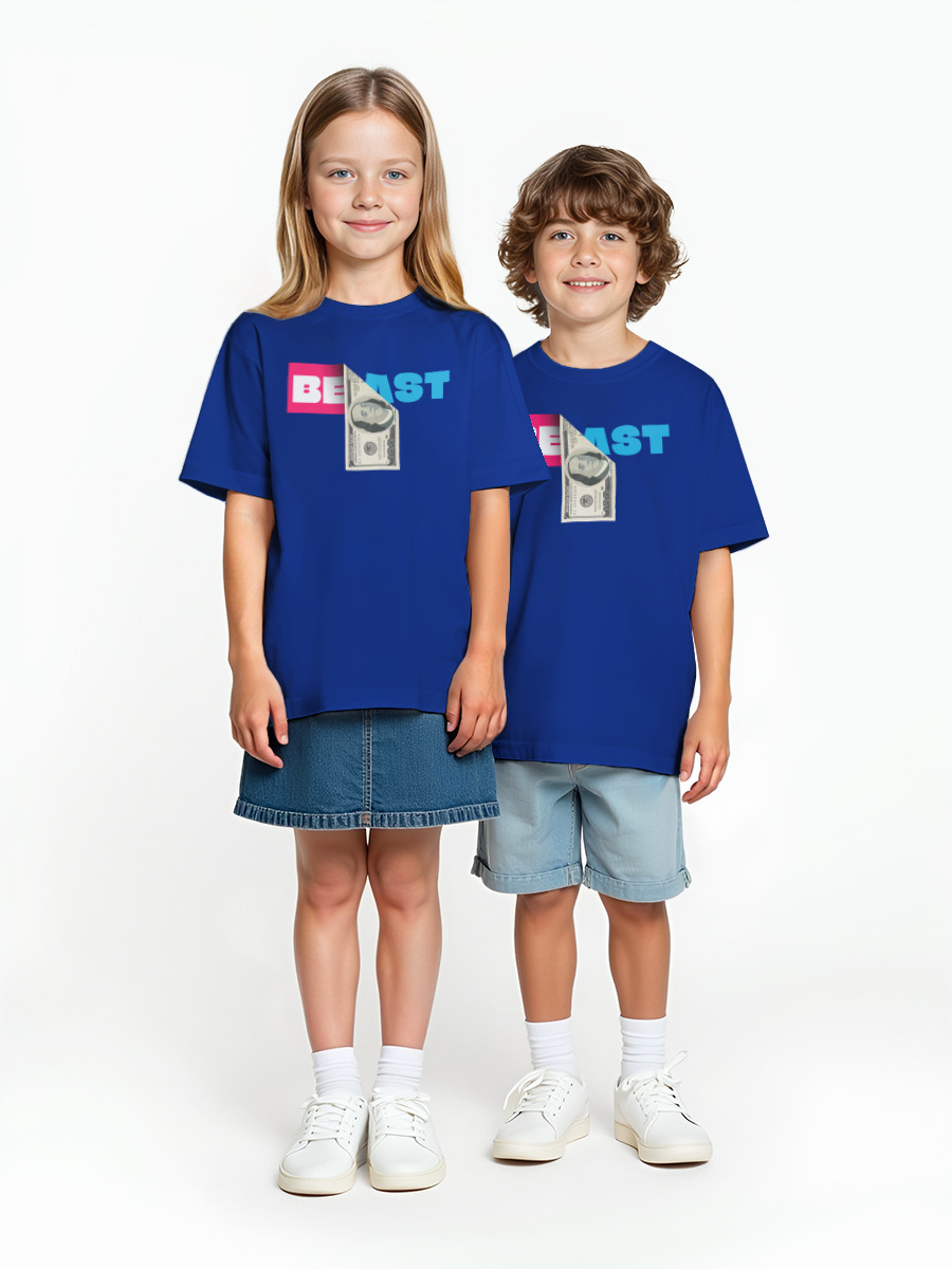 Детская оверсайз футболка «Мистер бист mr beast доллар мистера биста» цвет синий