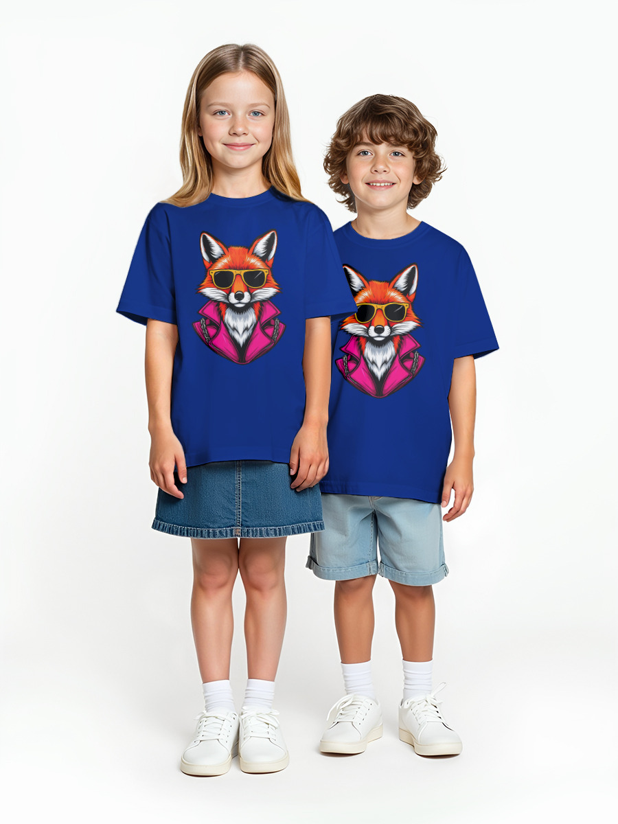 Детская оверсайз футболка «Модница лиса» цвет синий