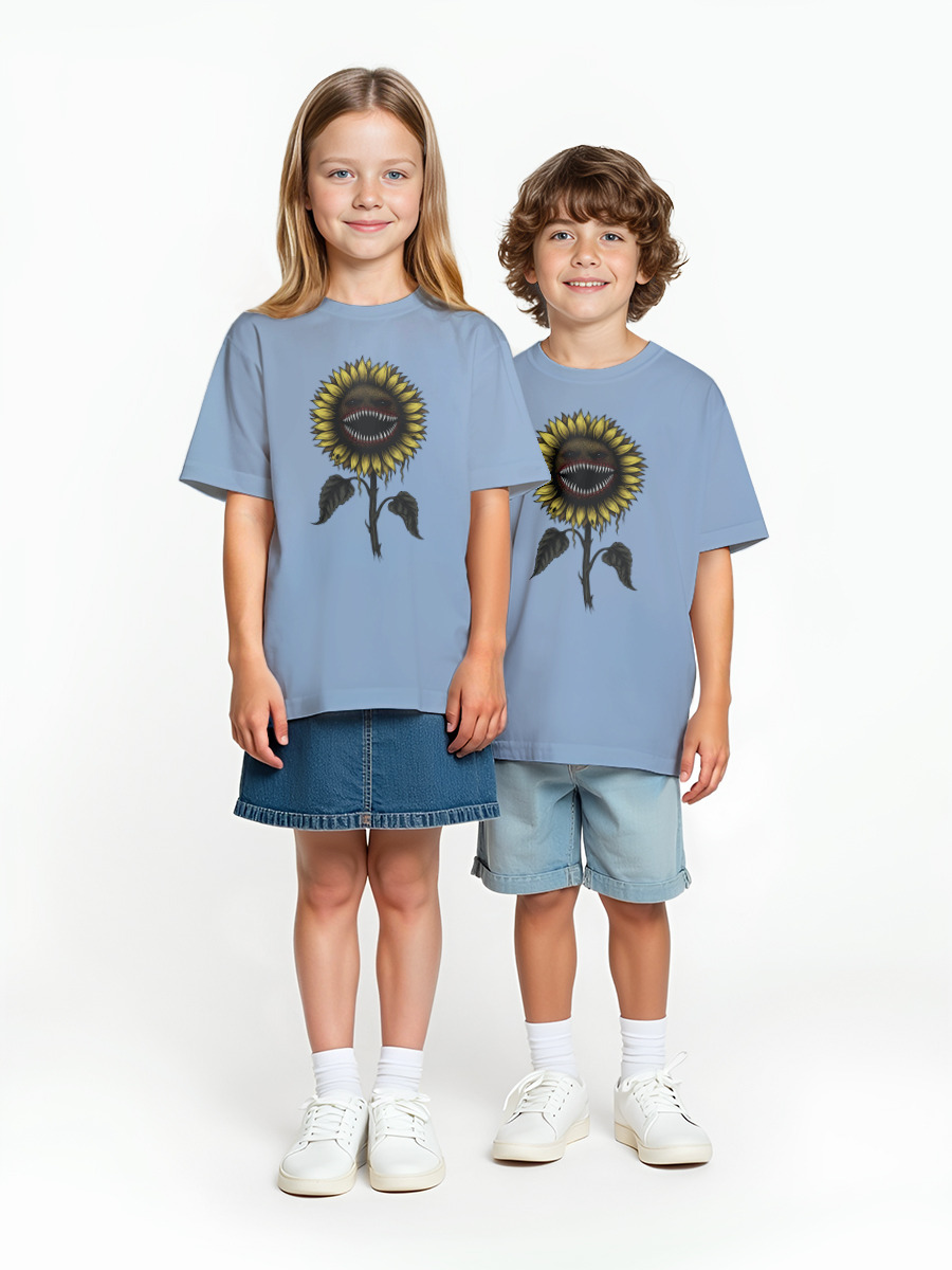 Детская оверсайз футболка «Монстр подсолнух» цвет голубой