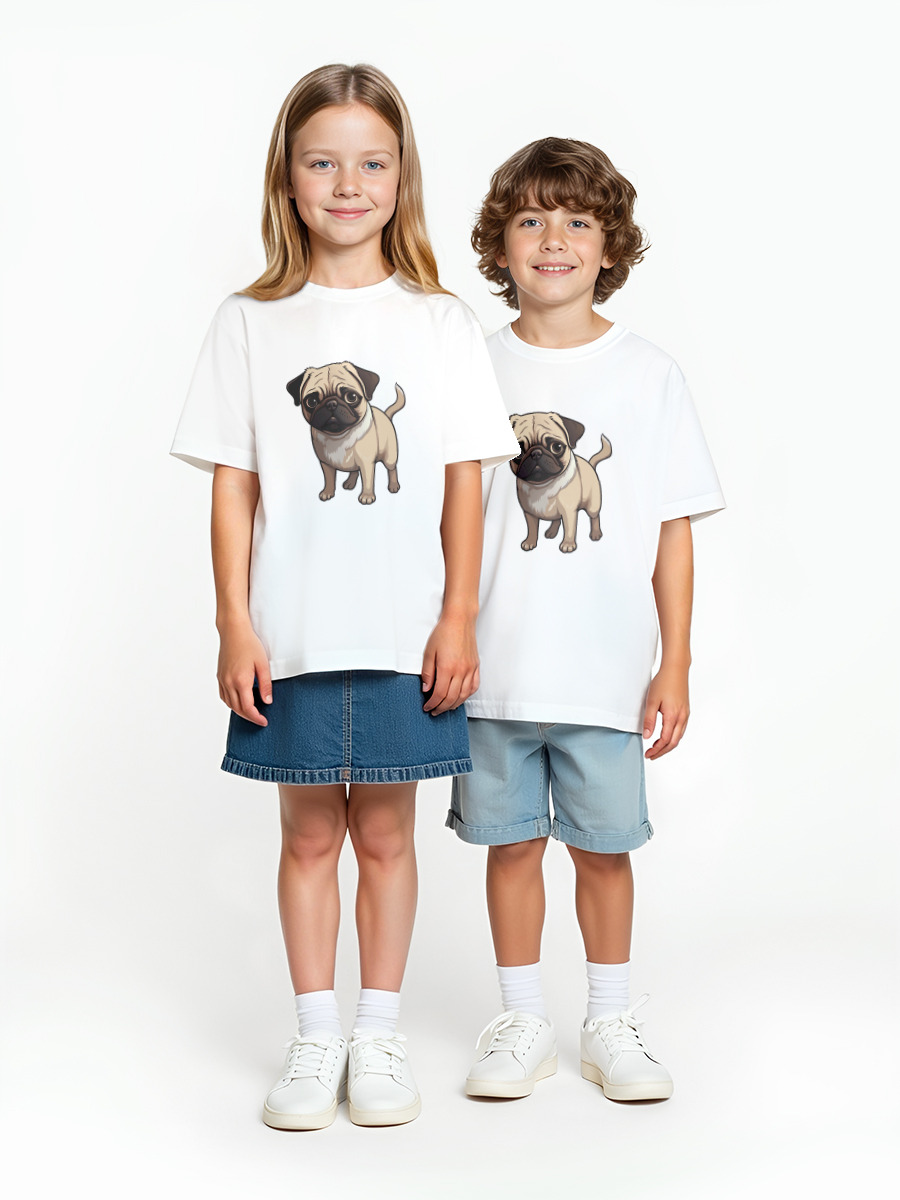 Детская оверсайз футболка «Мопс милый белый» цвет белый