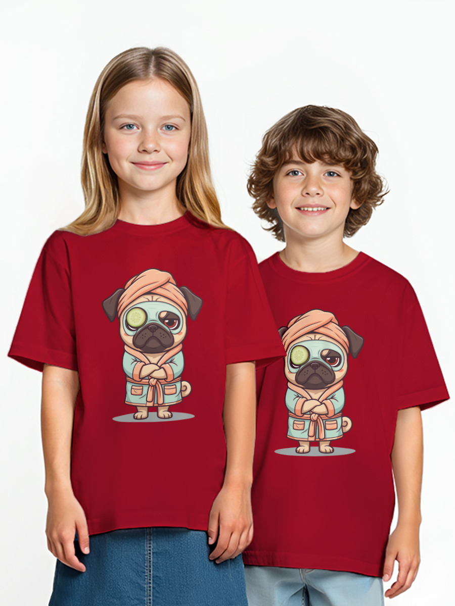 Детская оверсайз футболка «Мопс наслаждается спа-процедурами» цвет красный