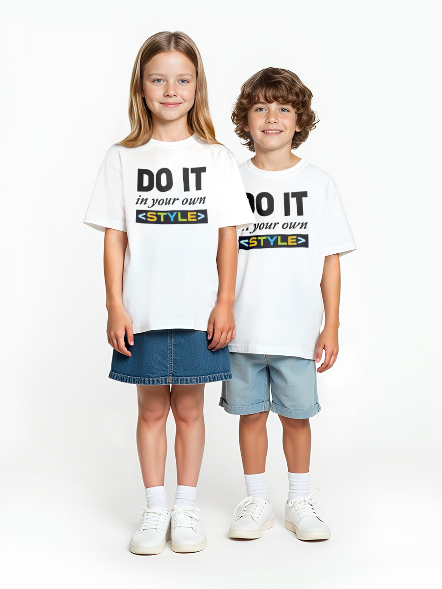 Детская оверсайз футболка «Надпись Сделай это в своём собственном стиле» цвет белый