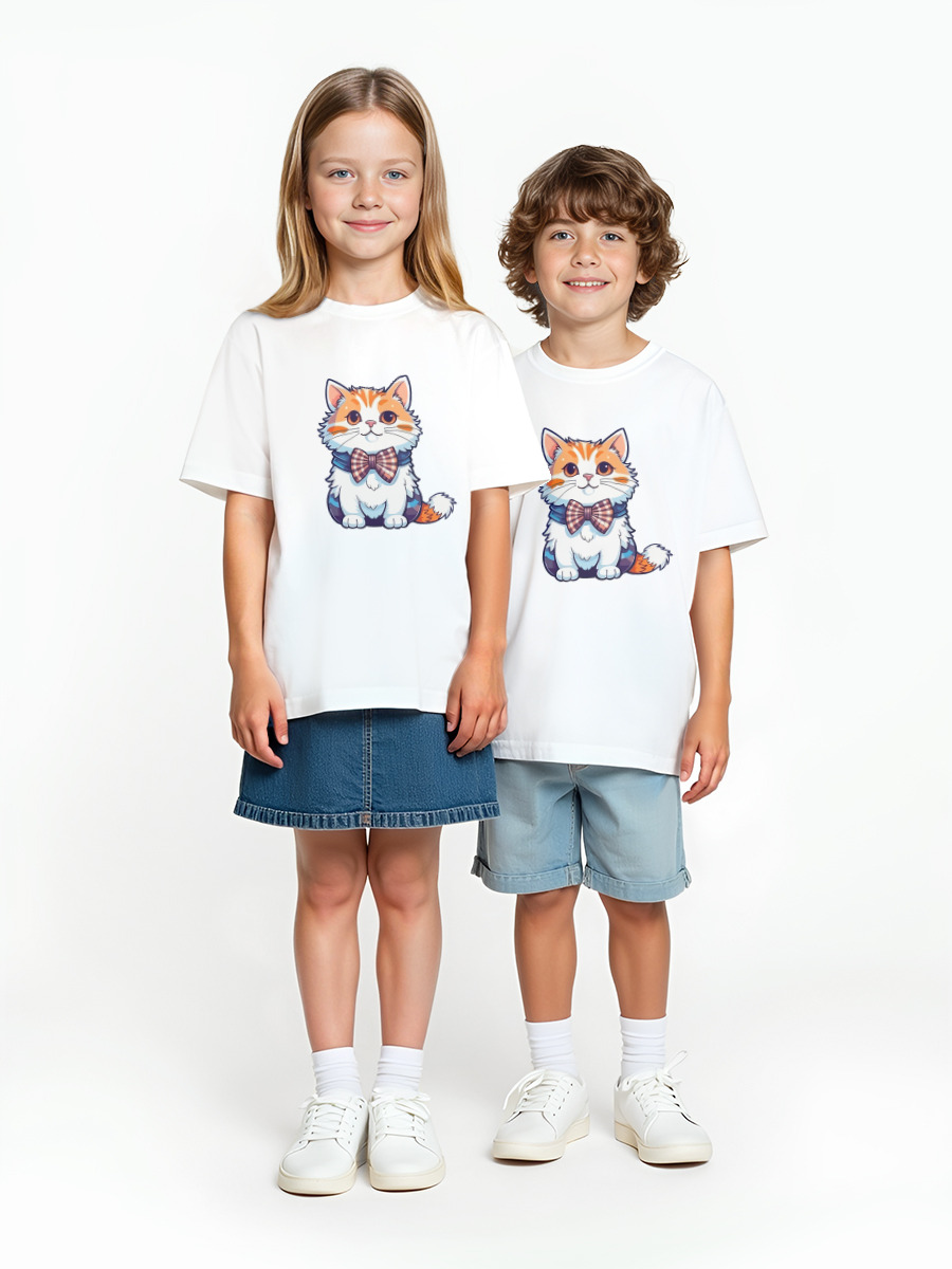 Детская оверсайз футболка «Нарядный кот с бантом. Котёнок» цвет белый