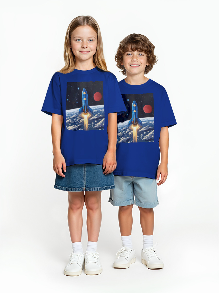 Детская оверсайз футболка «Наш космический полёт» цвет синий
