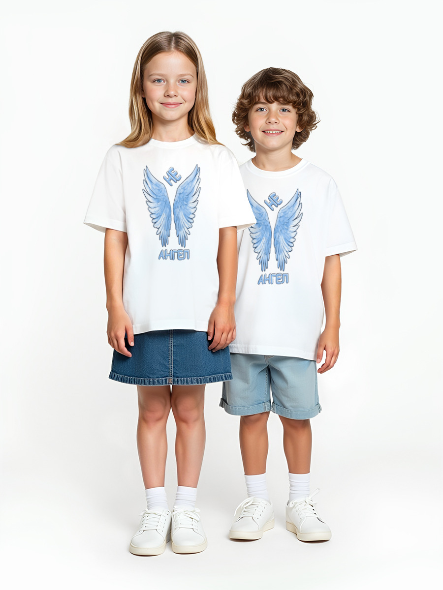 Детская оверсайз футболка «Не ангел - крылья ангела» цвет белый