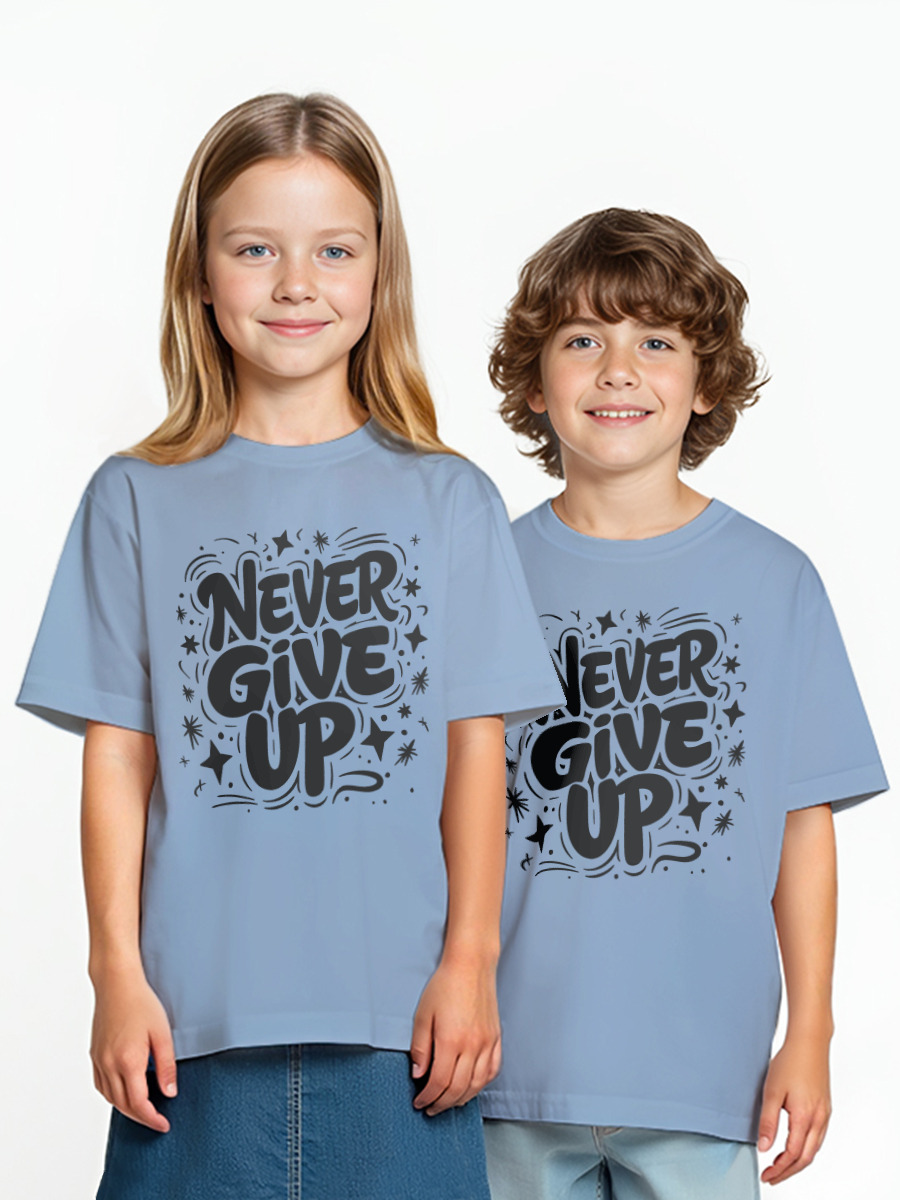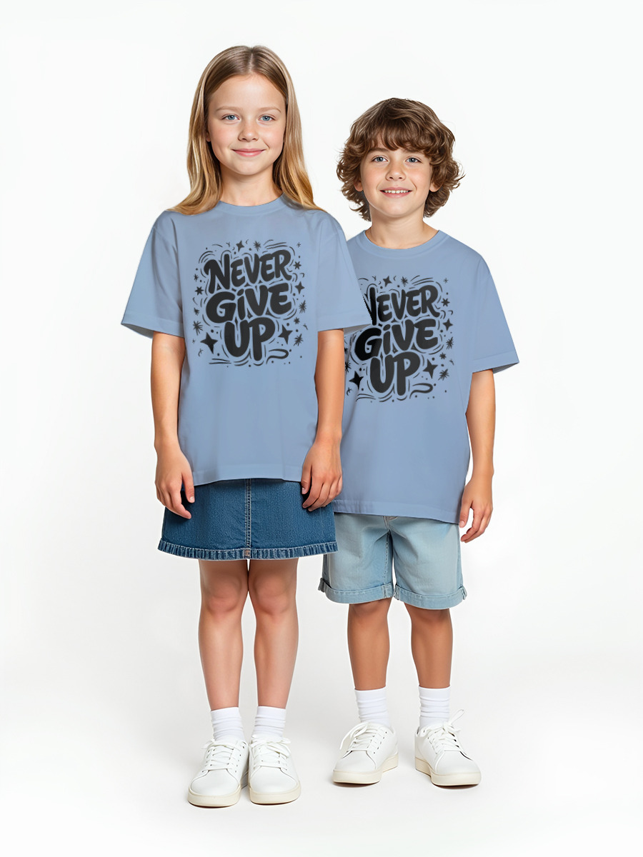 Детская оверсайз футболка «Never give up» цвет голубой