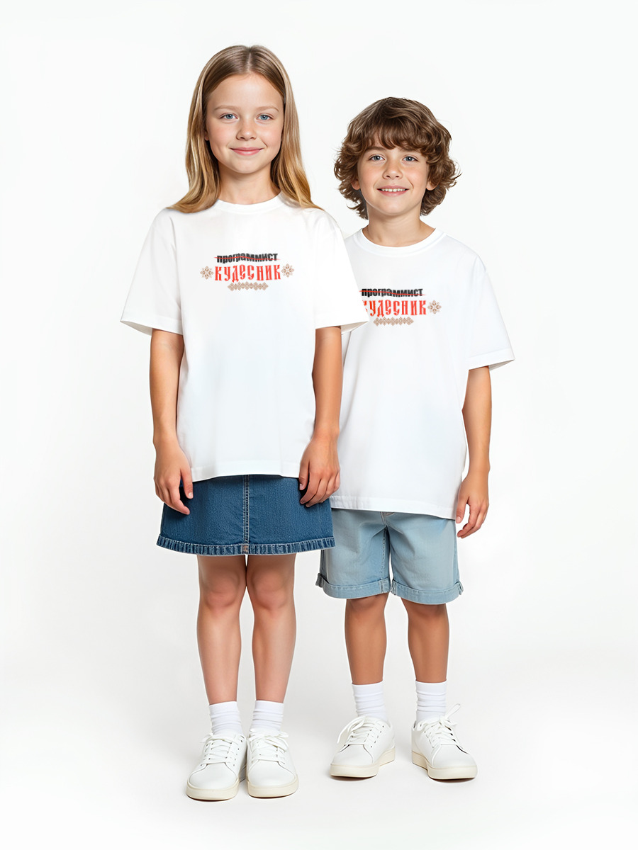 Детская оверсайз футболка «Программист - кудесник по-старославянски» цвет белый