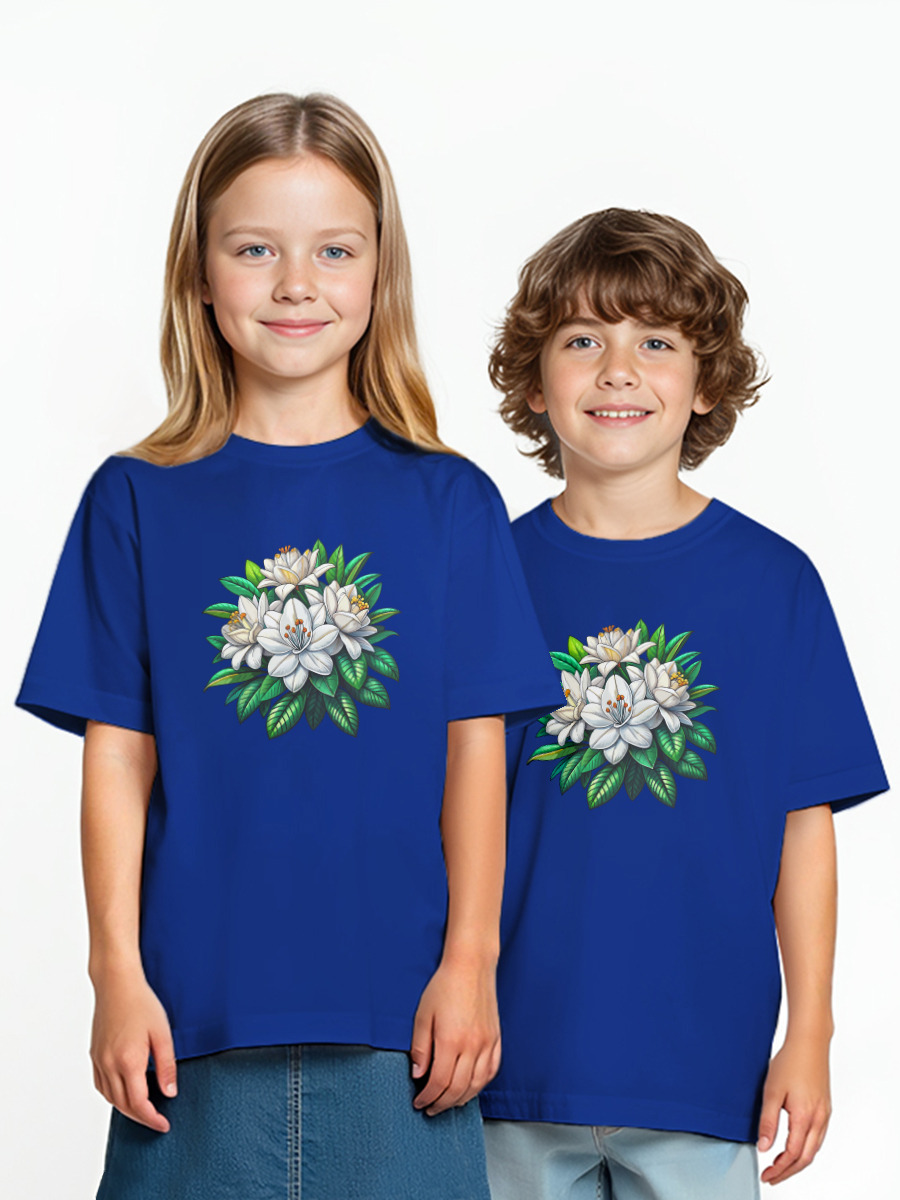 Детская оверсайз футболка «Рододендроны» цвет синий